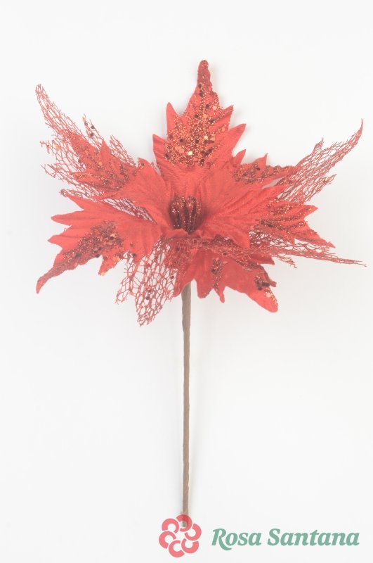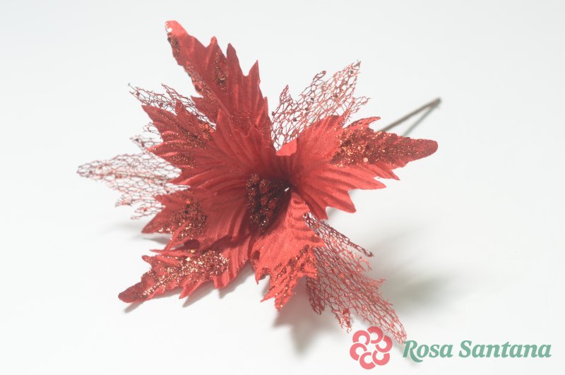 Голова пуансеттии с ножкой (d-28 cm) для ветки, венка
